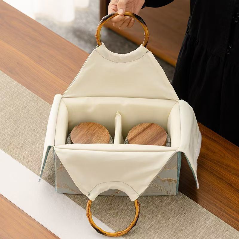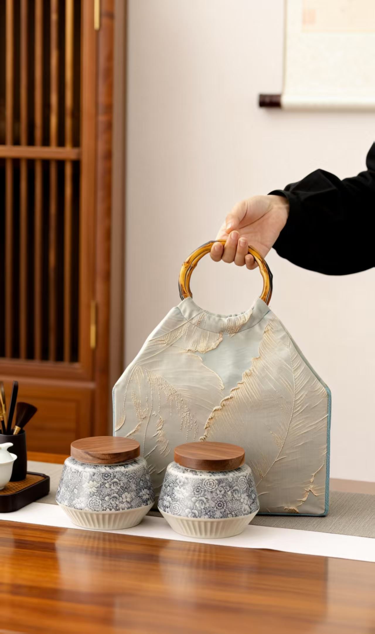 這款茶禮盒融合了傳統工藝與精緻設計,是傳遞心意的完美載體。茶包的竹製手柄採用精選面料,飾以立體葉繡,質感細膩,每次開合都能讓您感受到東方韻味的優雅。盒內包含兩個優雅精緻的青花瓷茶罐,每個茶罐都飾有復古圖案。胡桃木蓋不僅能鎖住茶香,更增添了自然的韻味。無論您是自己品茗,還是饋贈親朋好友,這款茶禮盒都能讓茶罐完美地承載茶香與心意,為每一口茶都注入一份優雅與詩意