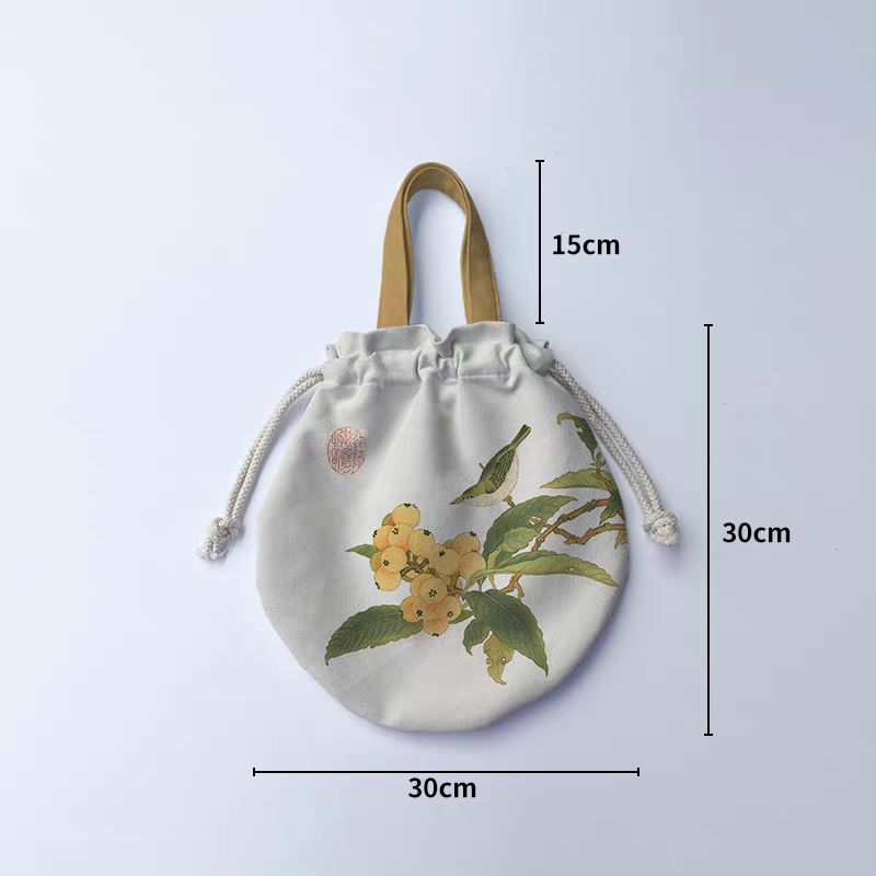 這款國風枇杷禽鳥抽繩袋,以淺柔布藝為載體,印飾清雅的枇杷、禽鳥插畫與朱紅印章,將中式傳統美學融入日常好物;抽繩收口設計方便快速收納,搭配質感皮質提手提升便攜性,容量配裝盛茶器、適創小物等物品。它既是日常輕收納的實用袋具,也能作為伴手禮袋承載心意,不管是自用收納添國風氛圍,還是贈人傳遞中式雅緻,都能憑顏值與實用兼顧的屬性,適配各類輕收納場景。