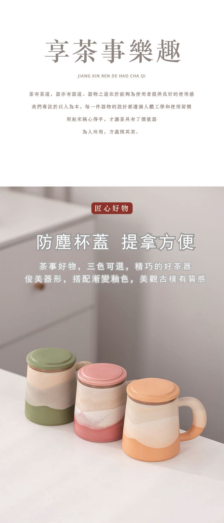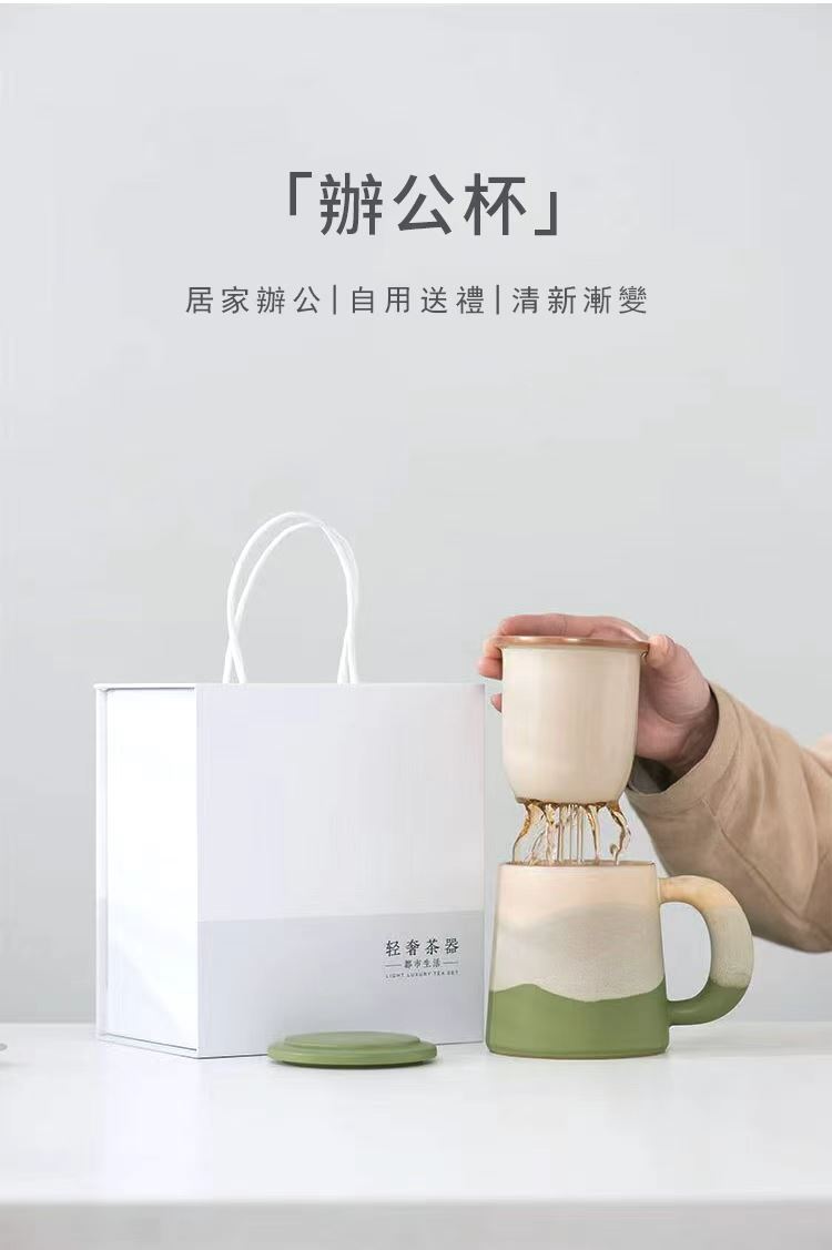 這款輕盈奢華的漸層茶具採用粉白相間的陶瓷釉面,柔和清爽的漸層質感營造出甜美的氛圍。防塵保溫的杯蓋和舒適的手柄,握感舒適,使用便利。這款輕盈奢華的茶具配有精美禮盒。無論是在辦公室的辦公桌前泡茶,或是在家中用它盛裝水,它都能完美勝任各種場合。它不僅是提升生活品質的專屬茶具,其優雅的外觀也使其成為饋贈親朋好友的貼心之選。