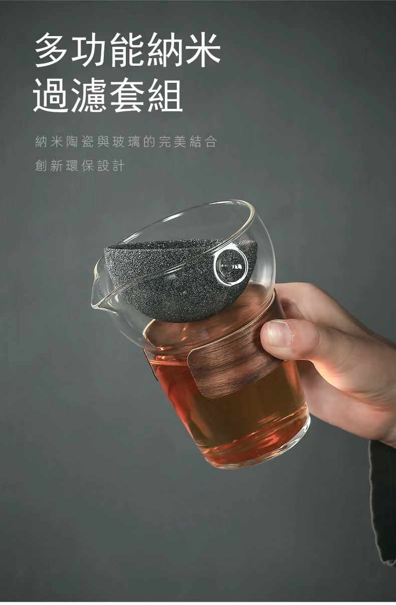 顏色:玻璃色,無孔茶漏,旋轉公平杯套裝