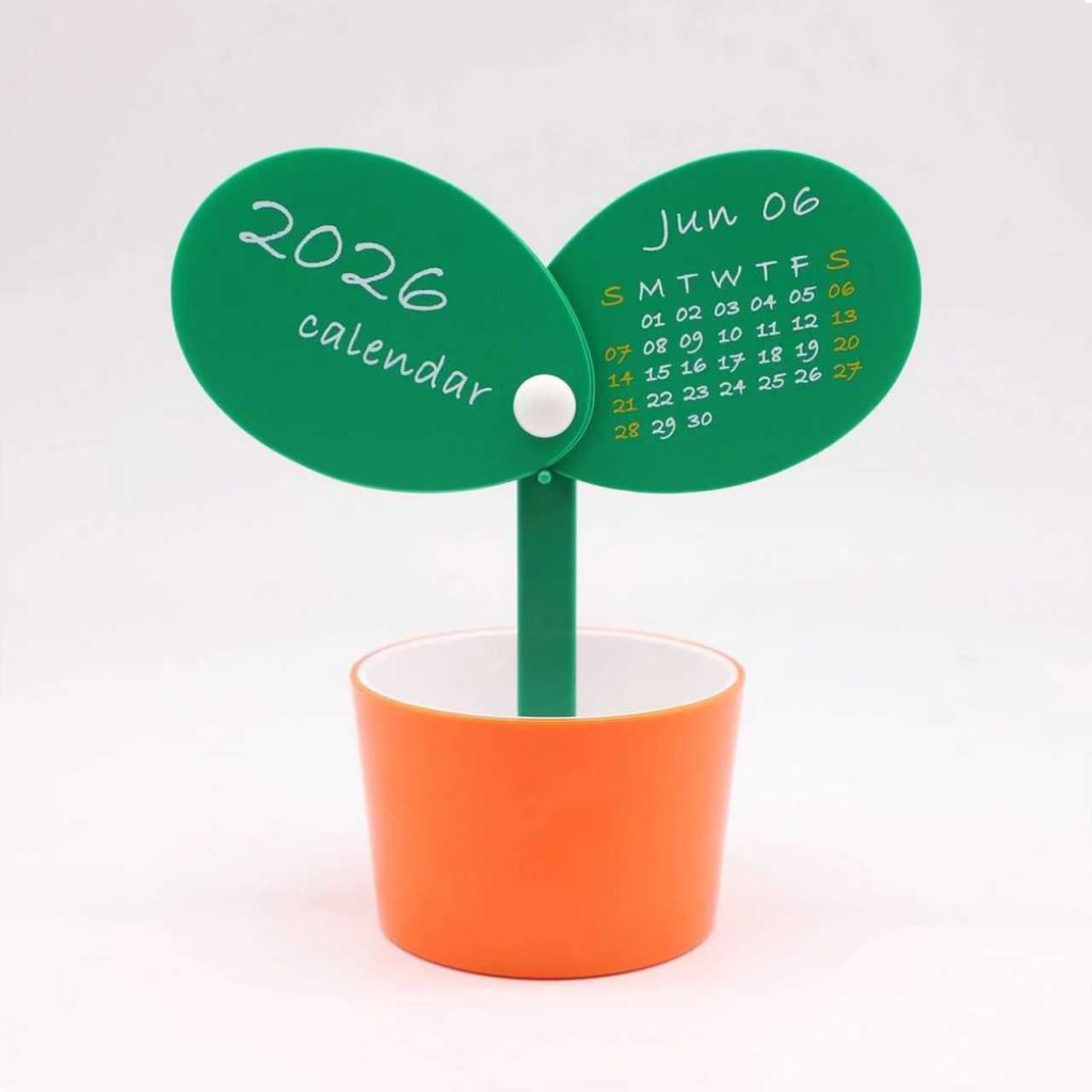 這款豆芽造型創意日曆,以清新綠的 “豆芽葉片” 為日曆載體,搭配活潑的橙色盆栽底座,造型鮮活潑萌趣,自帶治癒的生活氛圍感;葉片一側顯示年份,另一側是月曆佈局,可手動調整日期,兼具實用的日期查看功能與桌面裝飾屬性。它既適配辦公桌面、居家書桌的日常日期提醒,擺放在檯面能點亮空間,也能作為趣味小禮物傳遞生活巧思,憑萌趣設計與實用屬性,成為生活裡的可愛小點綴。