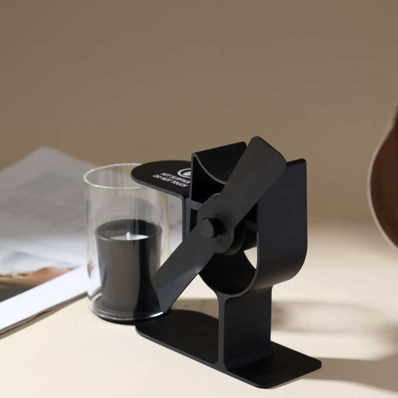 這款蠟燭熱驅動創意小風扇,是不用電的趣味好物 —— 借助蠟燭燃燒的熱量即可帶動風扇轉動,既讓蠟燭燃燒更充分,又能輕柔帶動局部空氣流通;黑色框架做成貓頭鷹造型,簡約線條裡藏著萌趣巧思,搭配蠟燭使用時,暖光 + 轉動的風扇自帶治愈氛圍。它既是居家桌面的小眾氛圍裝飾,也能作特別的創意小禮送給喜歡新奇好物的朋友,憑無電驅動的巧思與萌趣造型,成為生活裡的別緻小驚喜。