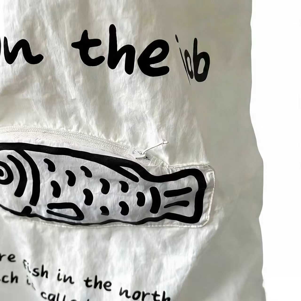 這款趣味 「摸魚」 主題折疊袋,以輕便可折疊的耐用材質打造,袋身印著搞怪文字 “loaf on the job” 與卡通魚圖案,搭配 “世上有種魚叫摸魚” 的詙諧文案,自帶輕鬆玩梗的氛圍;展開後能裝下購物、通勤的小物品,折疊後可縮成的小物品,一疊不管是買菜購物替代一次性袋、通勤裝隨身小物,還是作為趣味小禮送給愛 “摸魚” 的朋友,它都能兼顧實用與搞怪格調,是生活裡的輕鬆小幫手。