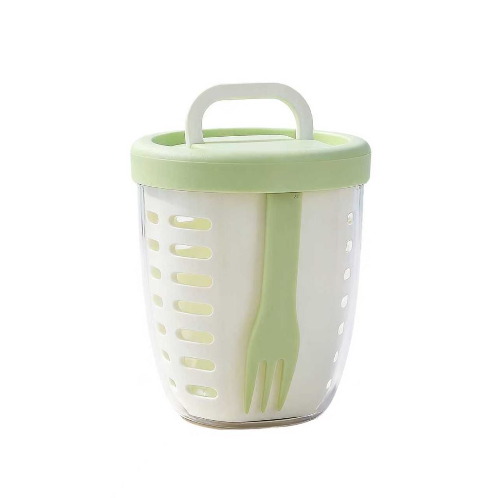 這款便攜式沙拉杯擁有鮮豔的綠色、紫色、黃色和粉紅色,設計時尚,堪稱「模特兒認證」的零食神器。杯子內置同色叉子,巧妙地收納在杯蓋內,方便取用且不易丟失。透明杯身和孔外蓋美觀大方,是盛裝沙拉、水果和其他點心的理想選擇。無論您是通勤上班、攜帶新鮮水果去戶外野餐,還是在家準備簡餐,這款沙拉杯的便攜設計、清新外觀、清潔衛生和便捷使用,都使其成為每位零食愛好者的必備之選。