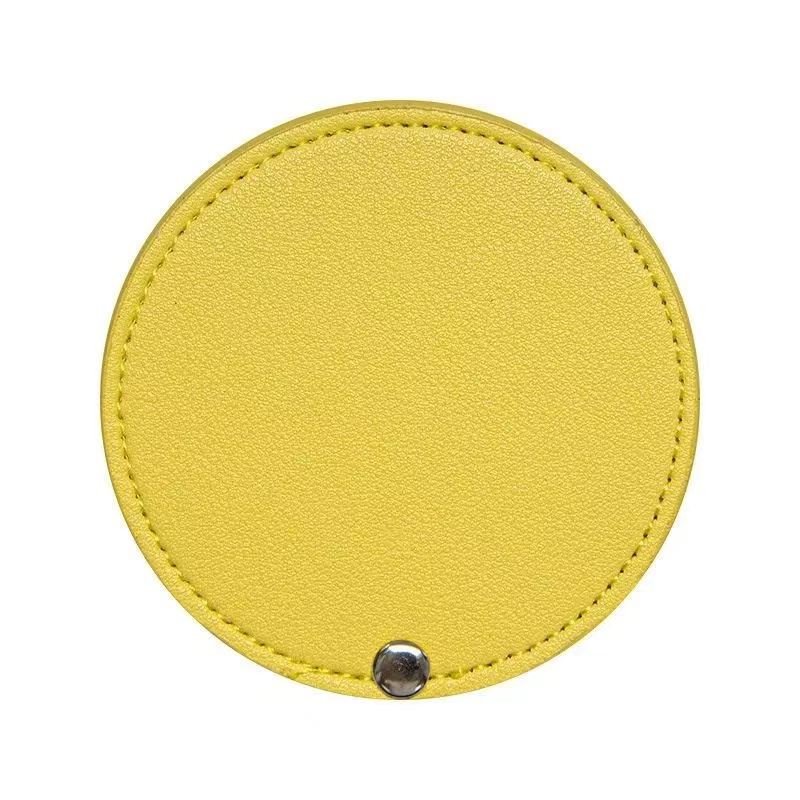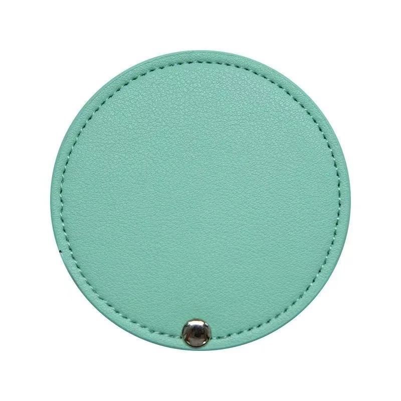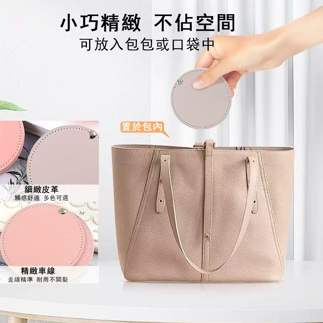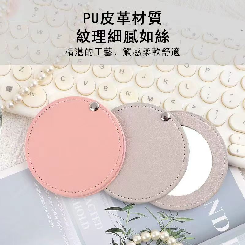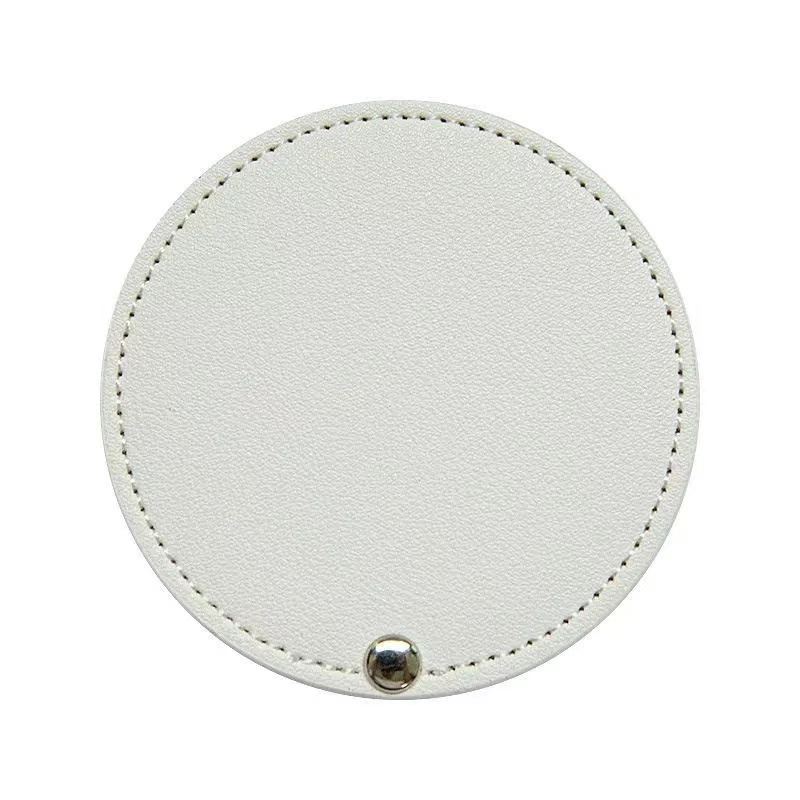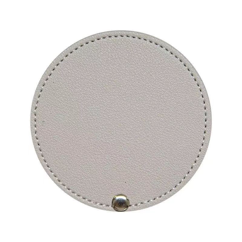 這款圓形皮革化妝鏡採用簡約的粉灰色配色。它由優質皮革精製而成,飾以精緻的縫線和金屬按扣。小巧的圓形設計,讓您隨時隨地輕鬆補妝。這款時尚實用的美妝小工具,是精緻生活方式的完美選擇。