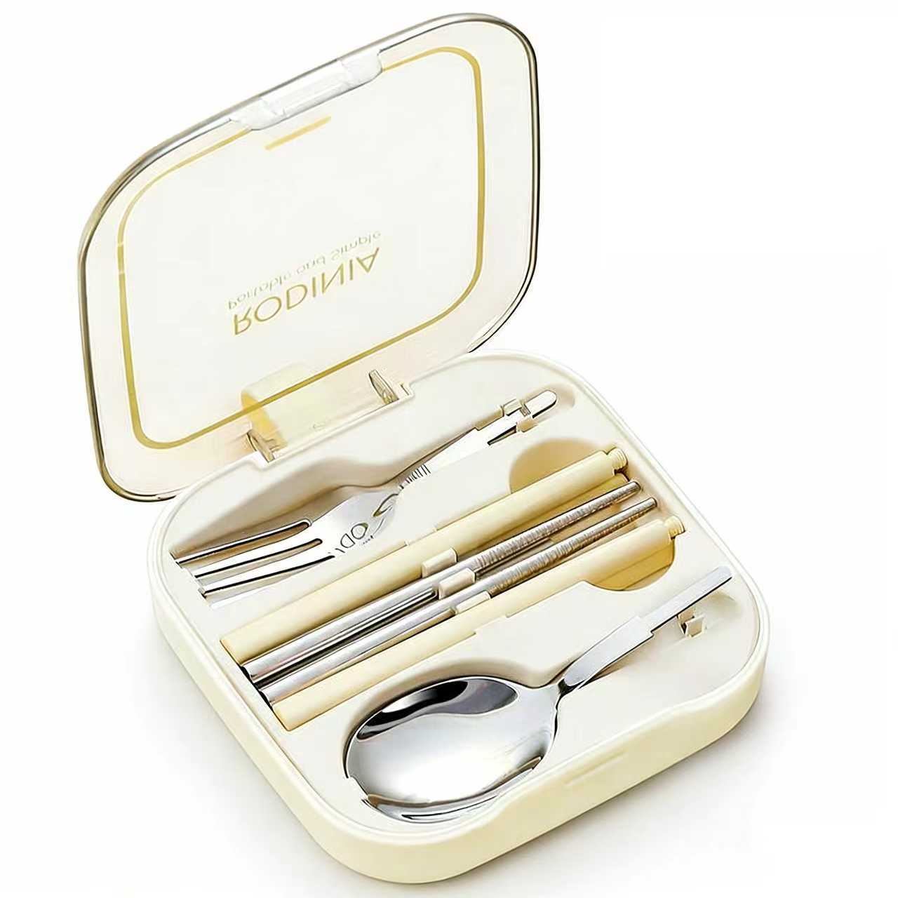 這款淺色系便攜餐具套裝,是外出用餐的整潔衛生小幫手 —— 包含精準固定位,能讓餐具整齊歸置不凌亂,盒身輕便小巧,附贈筷不管是通勤帶飯配餐盒、外出野餐當便攜餐具,還是餐廳就餐自帶更衛生,它都能憑整潔收納與清新顏值,讓外出用餐既方便又舒心。