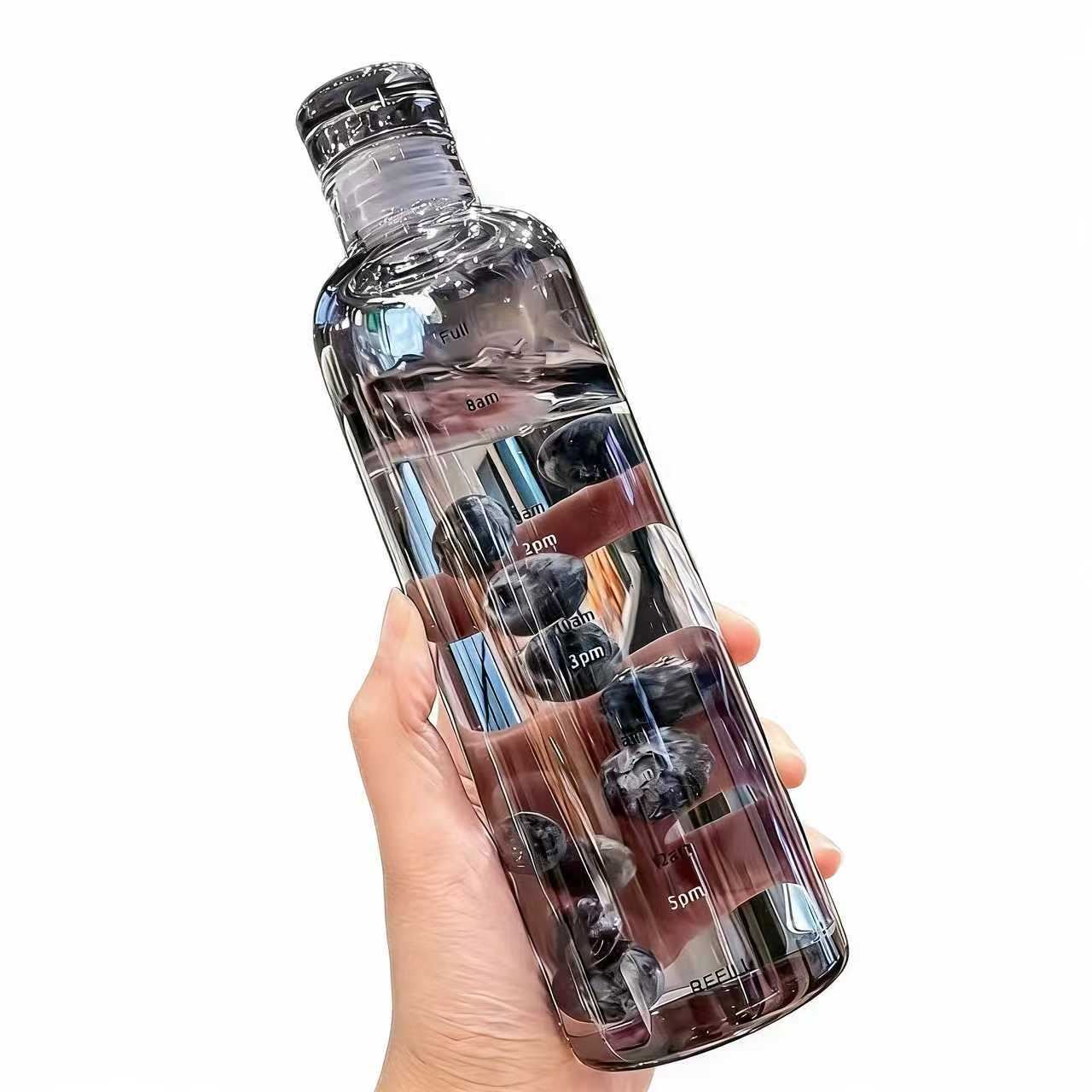 這款附時間刻度的透明便攜水瓶,是督促日常補水的實用顏值好物 —— 通透瓶身可直觀看到泡入的藍莓、果茶等食材,瓶身標註的時間刻度能精準提醒按時飲水,輕鬆解決 “忘記喝水” 的困擾;輕便材質搭配裝,不管是居家泡果茶、辦公時按刻度補水,還是外出帶溫水,它都能憑貼心提醒設計與清新顏值,讓日常飲水更規律愉悅。