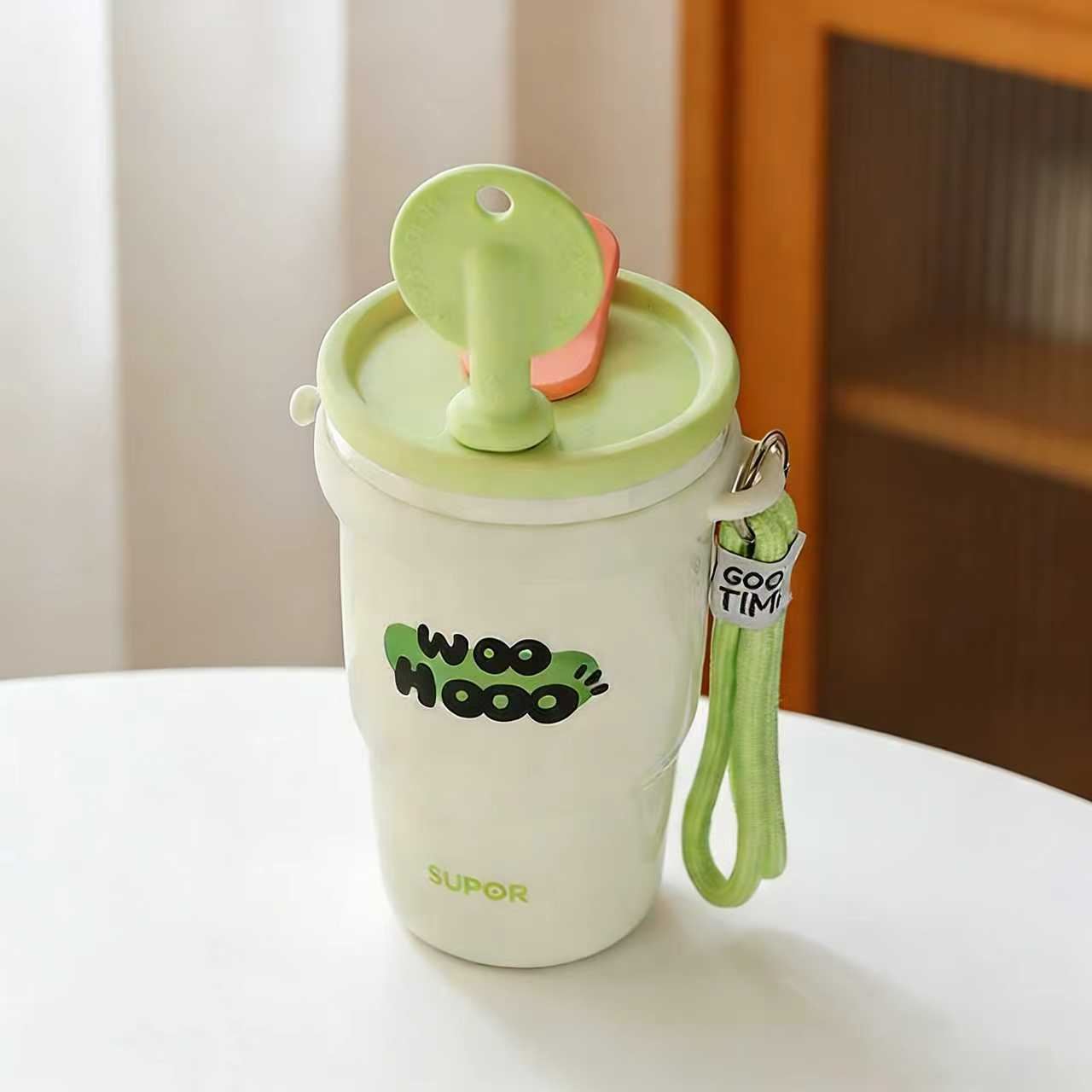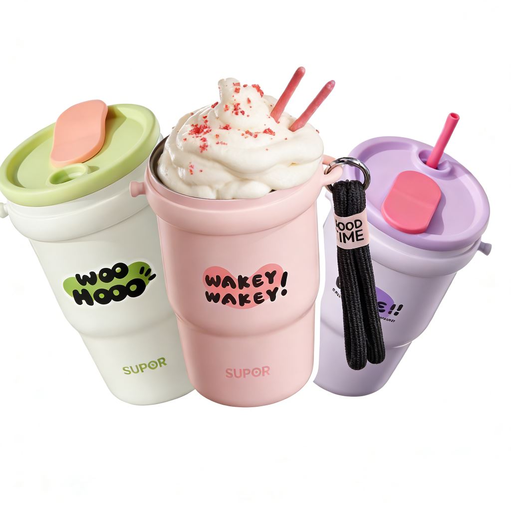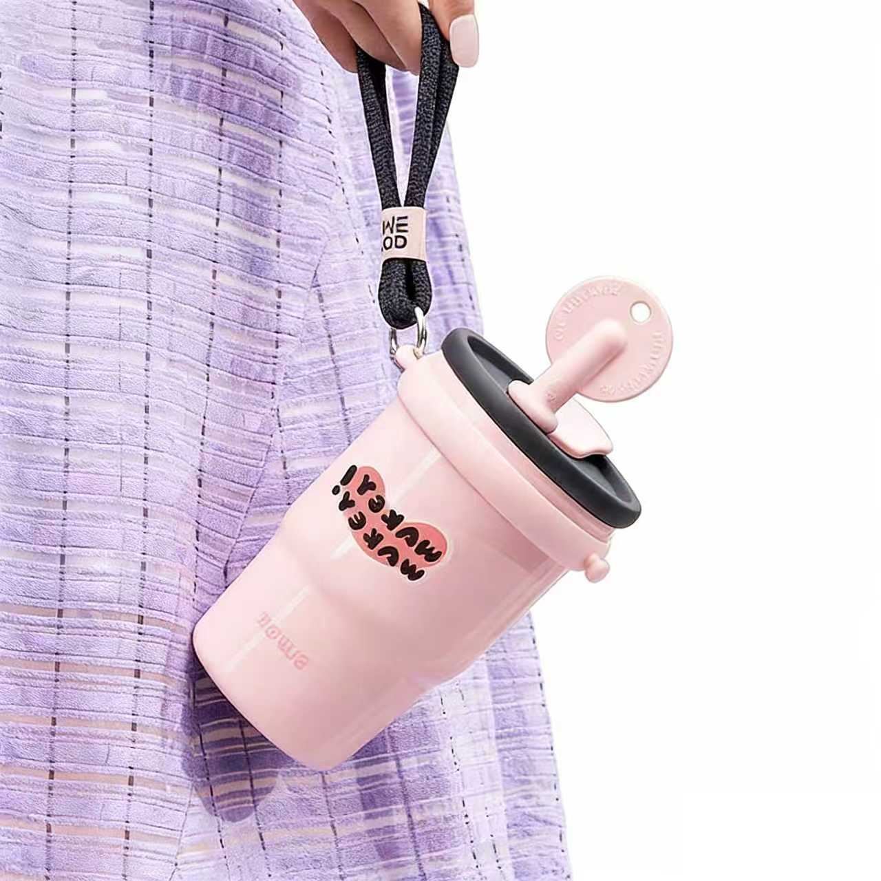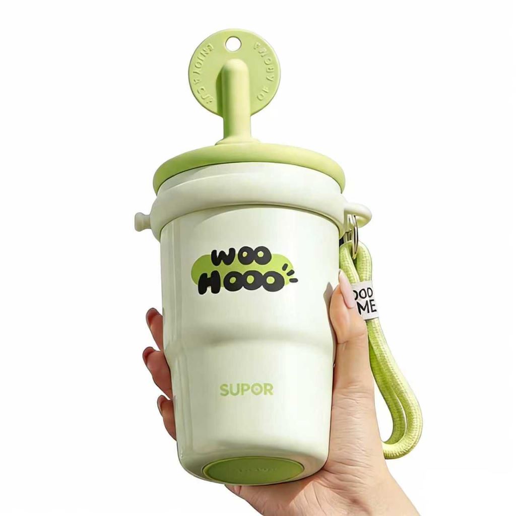 這款萌趣便攜保溫杯,是自帶可愛屬性的日常飲水好搭檔 —— 奶白、淡紫兩款清新配色搭配 “WOO HOO” 趣味字樣,顏值軟吸睛;杯身配可調節掛繩,能直接掛在包側解放雙手,還自帶吸管、茶隔吸睛;杯身配可調式掛繩,能直接掛在包側解放雙手,還自帶吸管、茶隔等配件,泡果可調性,也能喝到冰紙都很方便喝。不管是通勤掛包帶溫水、逛街裝冰果茶,還是宅家泡花茶,它都能憑萌趣顏值與實用配件,讓帶飲更省心可愛。