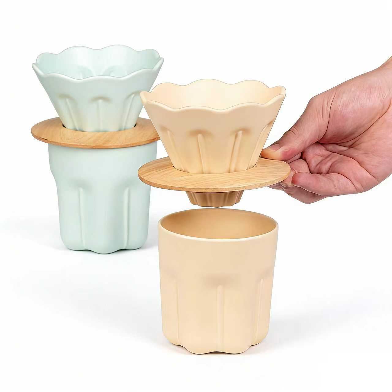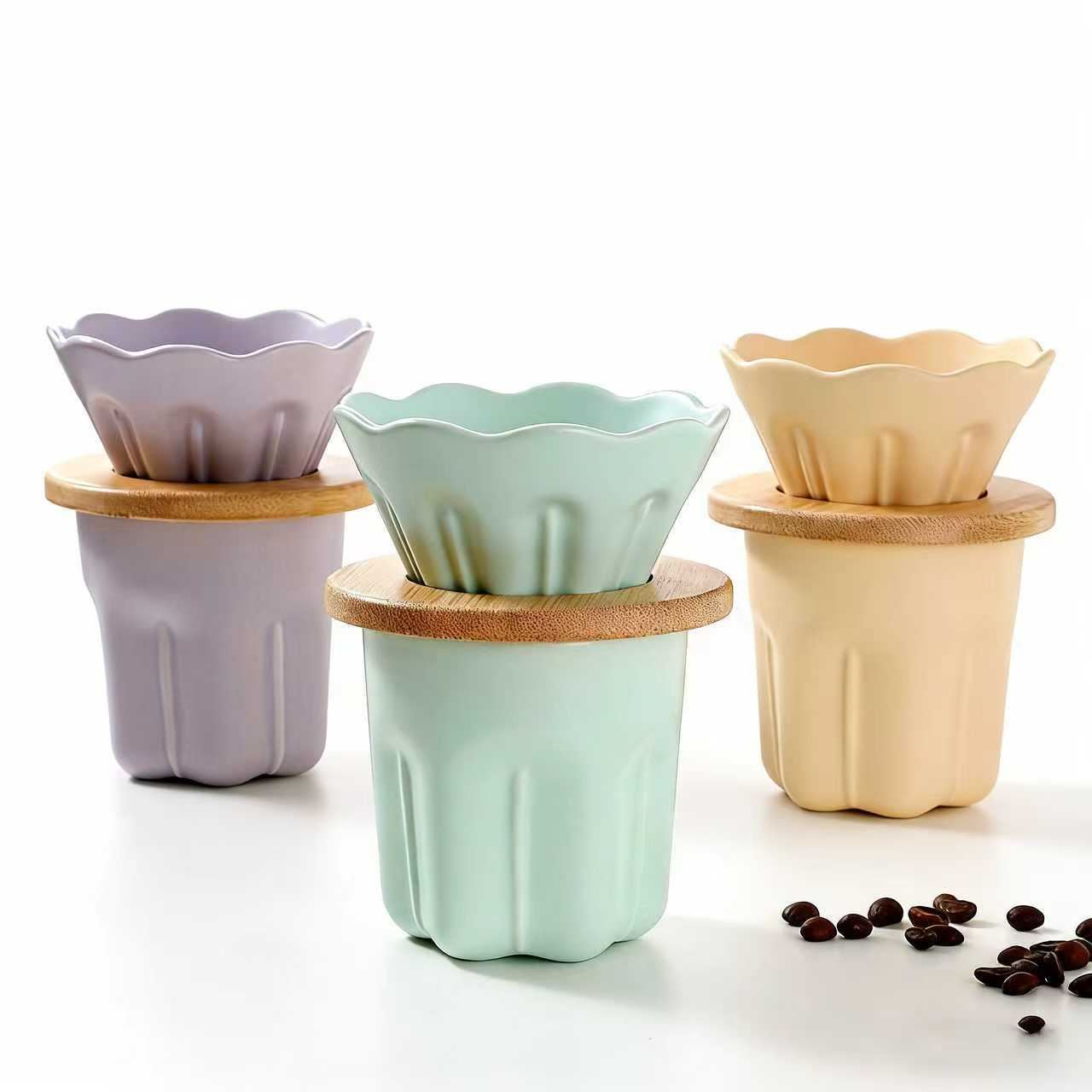 這款馬卡龍色系花瓣咖啡濾杯套裝,是手沖咖啡愛好者的清新顏值好物 —— 淺紫、淺綠、奶黃的柔和配色,搭配花瓣邊濾杯與同色系陶瓷杯,自帶溫柔氛圍感;中間的竹製承托蓋既能穩放濾杯沖煮咖啡,也能當咖啡罩給定泡不管是居家悠閒沖一杯晨間咖啡、辦公午間用它醒神,還是當作小禮物送給咖啡愛好者,都能憑顏值與實用圈粉。