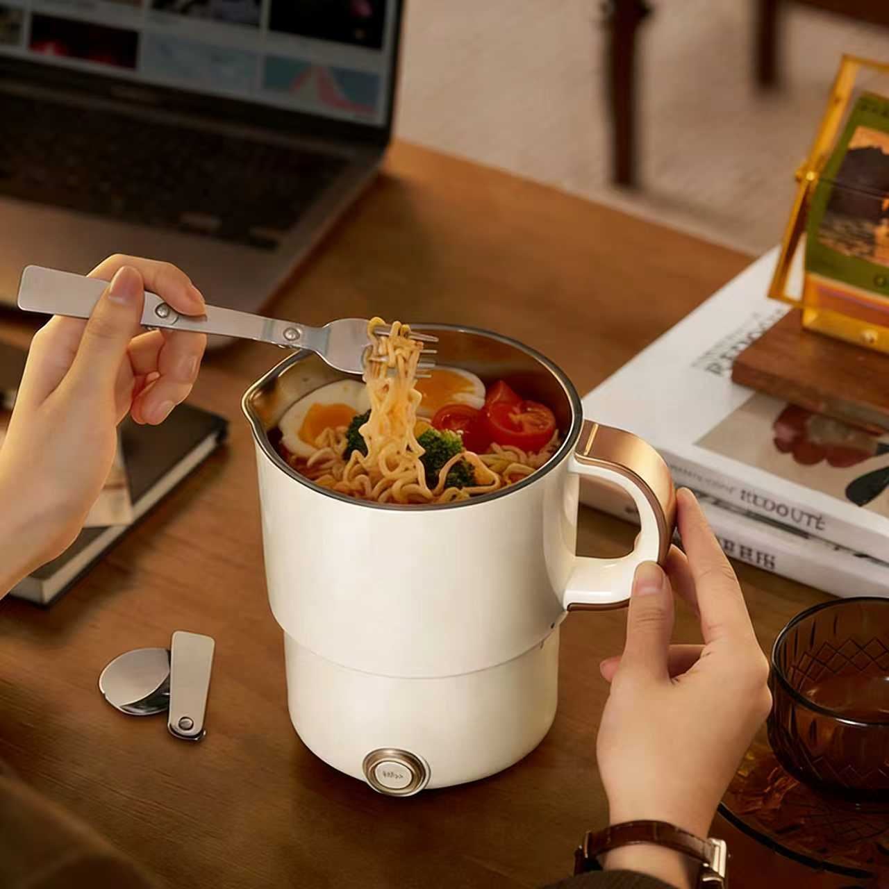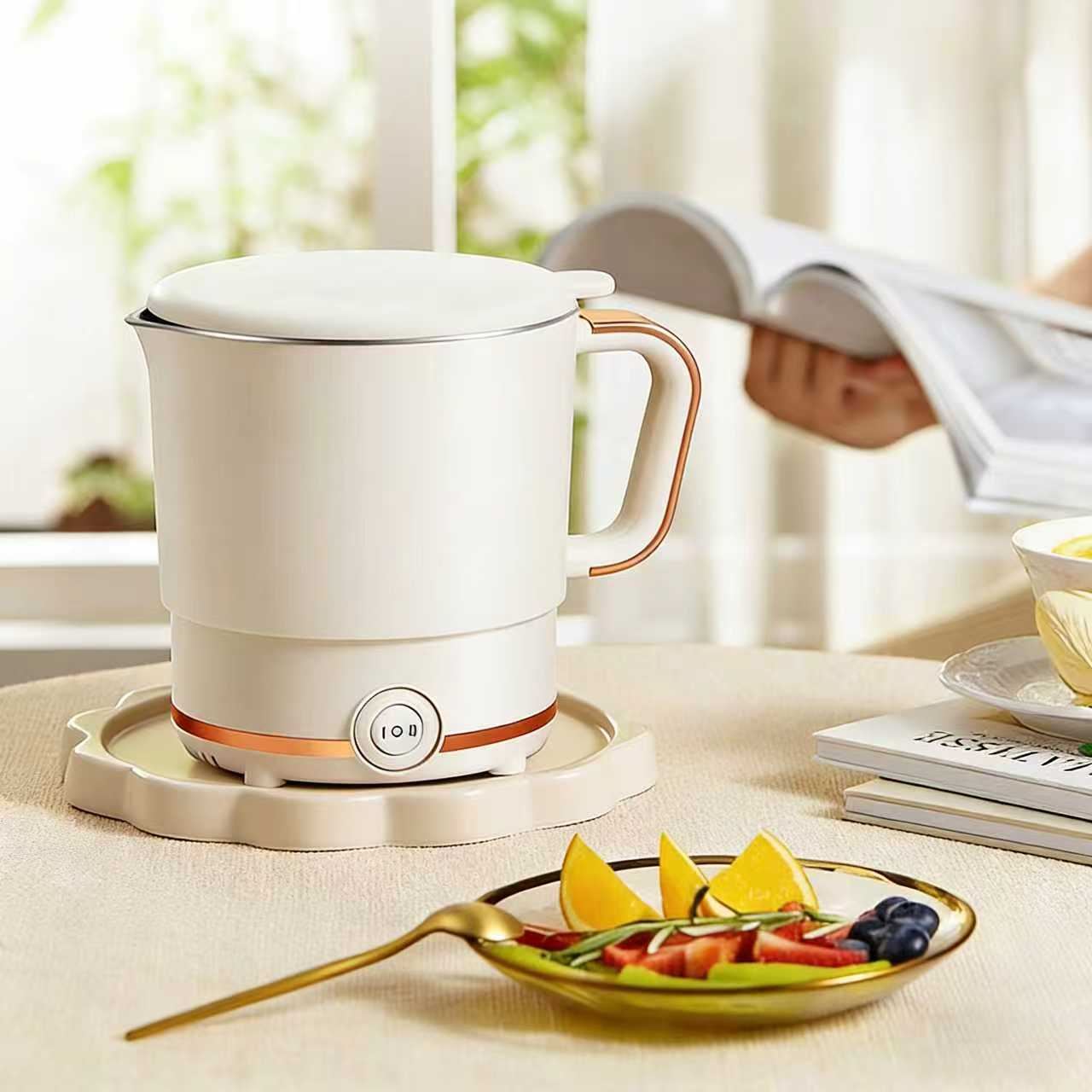 這款奶白色折疊電煮鍋是獨居黨與輕烹飪愛好者的貼心好物 —— 簡約柔霧白外觀搭配復古棕邊把手,質感溫柔又耐看;折疊式結構收納時不佔空間,輕鬆適配宿舍、租房的小廚房場景;既能煮麵、熱粥,也能輕輕一配烹飪,實用電鍵能操作簡單,一人燉煮開關的小點心是平裝開關。