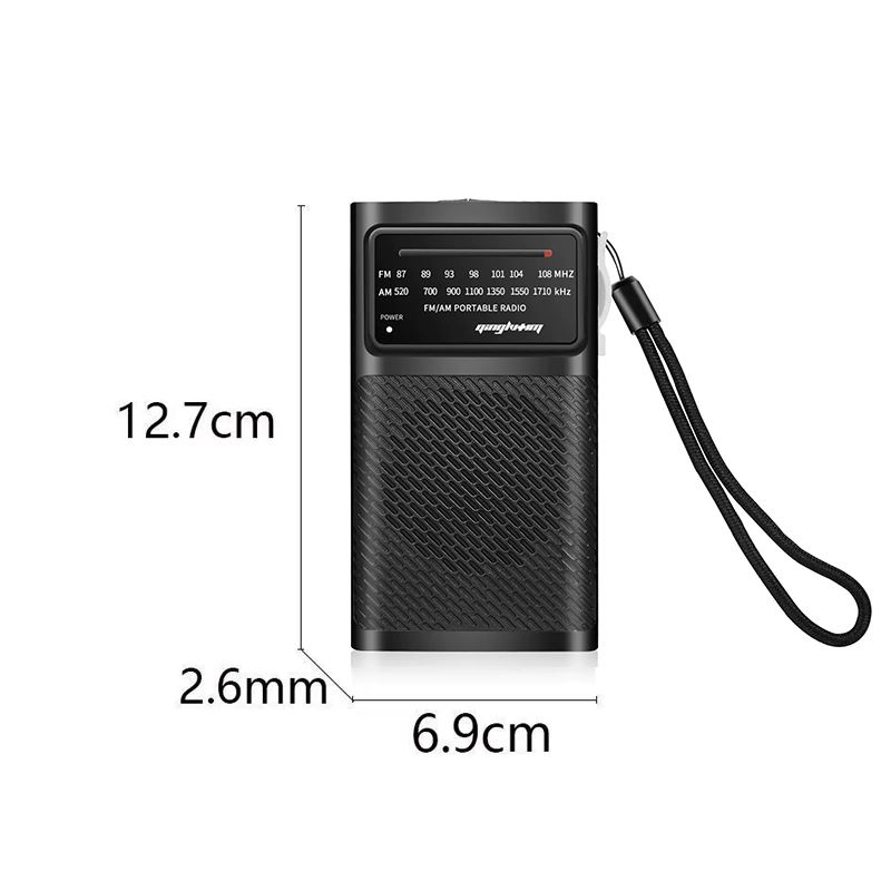 這款黑色便攜收音機是兼顧實用與輕便的聽覺小裝備 —— 小巧機身搭配掛繩設計,可隨手掛在包上或揣進衣兜,方便日常攜帶;支持多頻段調頻收音,搭配清晰的調頻顯示與電池供電,不管是日常聽廣播、戶外露營解悶,還是老人家都能接觸到聽節目,以閒暇工具
