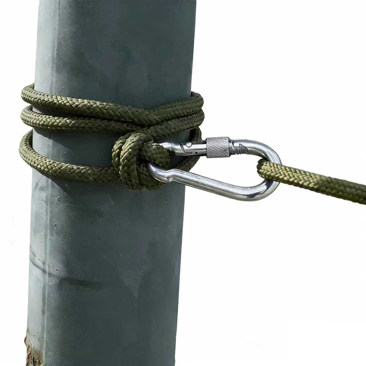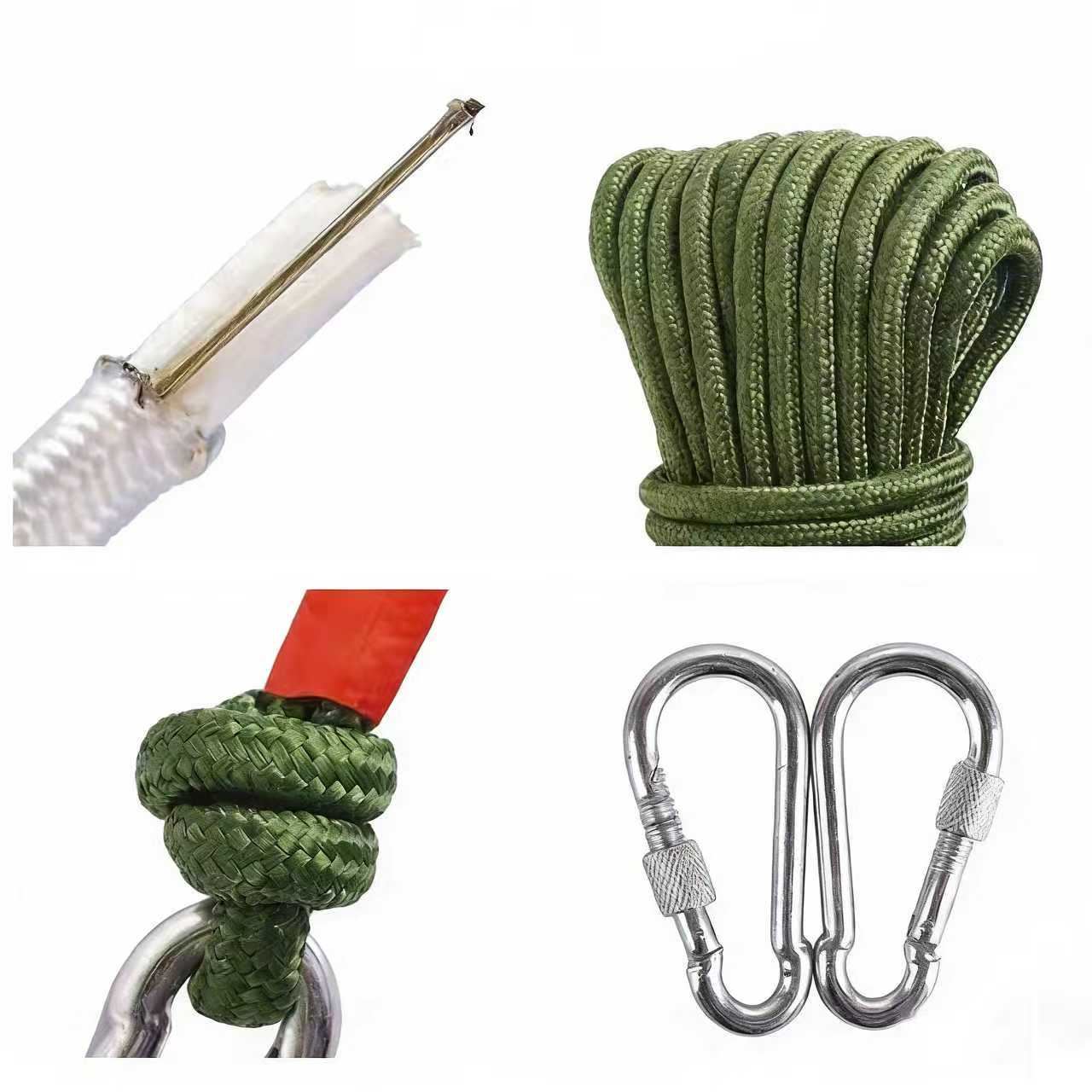 這款戶外實用繩索套裝是露營、健行等場景的可靠輔助工具 —— 軍綠色耐用繩索搭配金屬頭加固,不易脫線更耐用,還配套了實用登山扣;整捲收納小巧不佔裝備空間,登山扣方便掛繫物品或固定裝備,適配露營時固定帳篷、徒步中護身