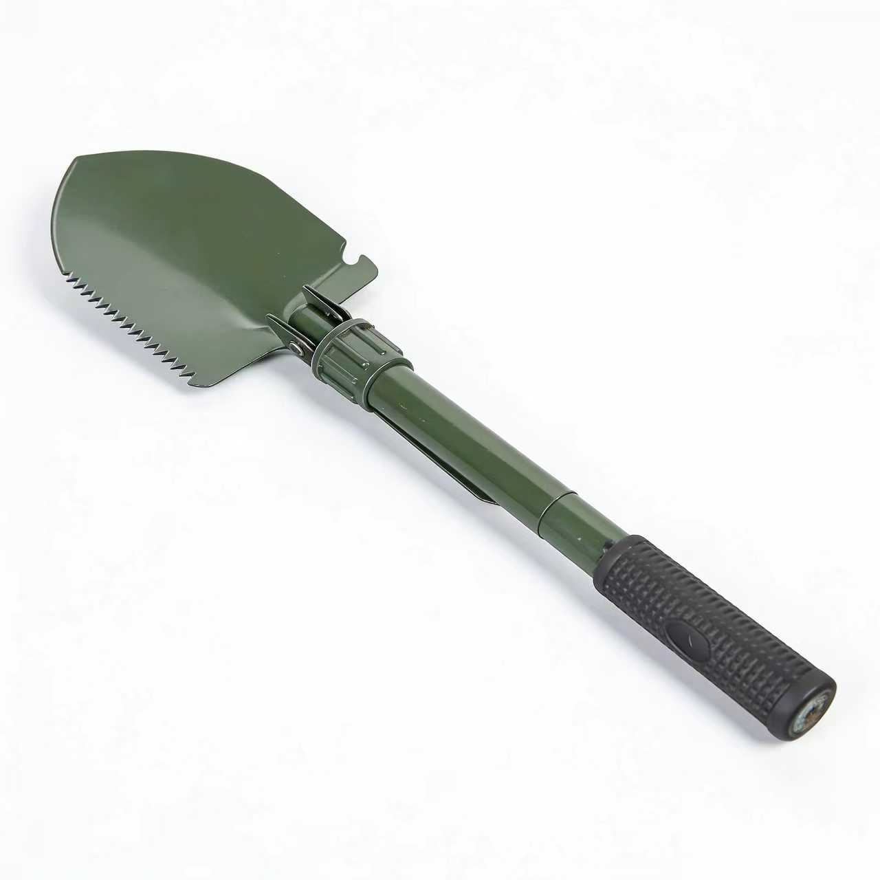 這款軍綠色折疊多功能工兵鏟是戶外出行的實用輔助工具 —— 採用可折疊伸縮設計,收納後小巧便攜不佔裝備空間,展開後兼具鏟挖、鋸切功能,搭配防滑手柄握持穩固省力;適配露營時挖坑搭灶、徒步中鋸斷小樹枝、戶外應急手整理場地等實用場景,以緊湊設計承載空間愛好者