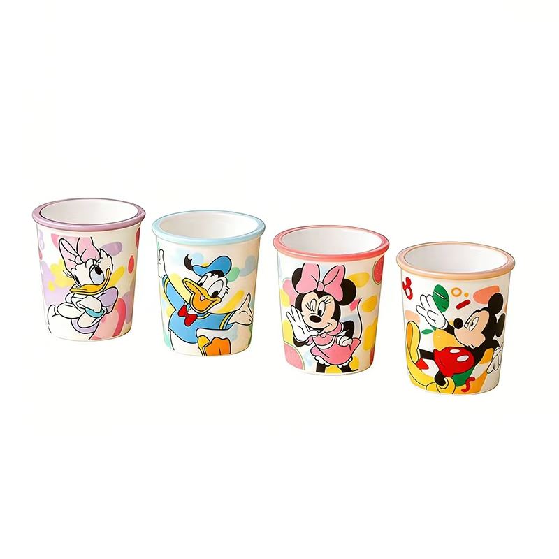 這款迪士尼經典角色聯名水杯套裝,集結了米奇、米妮、唐老鴨與黛絲四大人氣角色,每個杯身都印著角色專屬的萌趣印花,搭配撞色杯邊與潑墨風彩色點綴,把迪士尼的鮮活童趣搬進日常飲水場景。杯子採用食品級安全材質製作,耐高溫易清潔,圓潤杯型握持舒適,適配沖泡咖啡、牛奶、果汁等多種飲品,無論是家庭分享使用,還是作為迪士尼粉絲的收藏好物,都能為生活注入滿滿的治愈感,讓每一次喝水都充滿可愛儀式感。