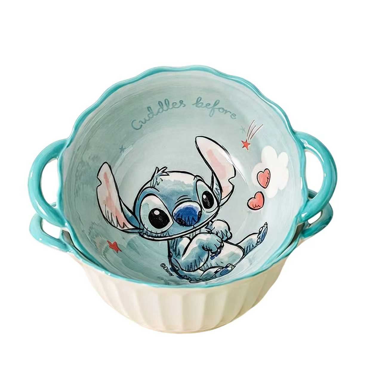 這款迪士尼史迪奇聯名雙耳碗套裝,以清新的藍白撞色搭配手繪風的史迪奇萌趣印花,碗身印著治癒感滿滿的 “Cuddles before” 字樣,波浪形邊緣與圓潤雙耳設計,讓可愛感與實用性兼具。碗身採用細膩的陶瓷材質,耐高溫可直接微波加熱,大碗適合盛放泡麵、沙拉或主食,小碗適配湯品、輔食或小食,雙耳設計握持舒適不燙手,無論是學生黨宿舍用餐,還是家庭日常使用都很合適。它既是提升用餐幸福感的實用餐具,也是史迪奇粉絲值得收藏的可愛週邊,讓每一餐都充滿童趣療癒感。