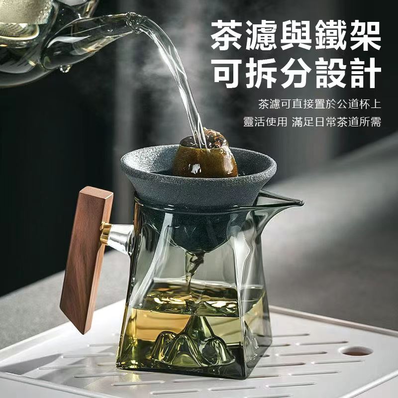 這款可分割茶濾公道杯套裝,主打茶濾與鐵架的分體設計 —— 茶濾可直接架於公道杯上濾渣,拆分後又能單獨清洗,適配日常茶事的便捷需求;透明玻璃公道杯搭配木質防燙把手,既方便觀賞茶湯色澤,又能避免握燙手,打造濾砂感,既方便又方便茶質茶色,又能避免握燙手,打造濾砂感。它既適配居家茶席的自享泡茶儀式感,也能滿足辦公輕飲、茶友小聚的分茶需求,簡約高級的風格還可作為質感茶禮贈予愛茶之人,是顏值與實用性兼備的茶器好物。