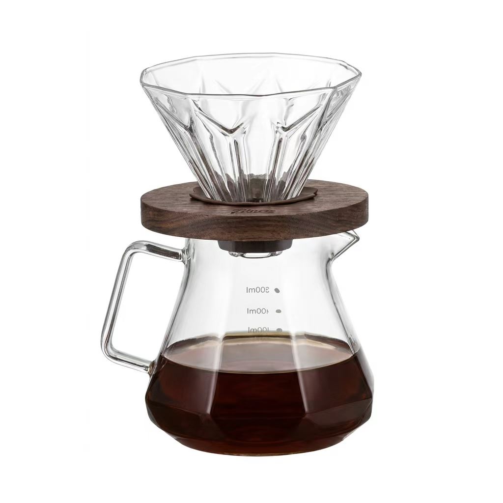 這款手沖咖啡完整套裝,涵蓋玻璃手沖壺、木質濾杯架、帶刻度玻璃分享壺及手搖磨豆機,透明玻璃材質可清晰觀賞咖啡萃取過程,木質架添溫潤質感、手搖磨豆機方便按需調節研磨度,一站式滿足手沖咖啡的全流程需求;簡約質感的搭配適配居家打造專屬小咖角,既是咖啡愛好者的入門實用套裝,也能作為格調禮贈傳遞對咖啡的熱愛,憑顏值與功能的雙重適配,成為享咖時光的好搭檔。