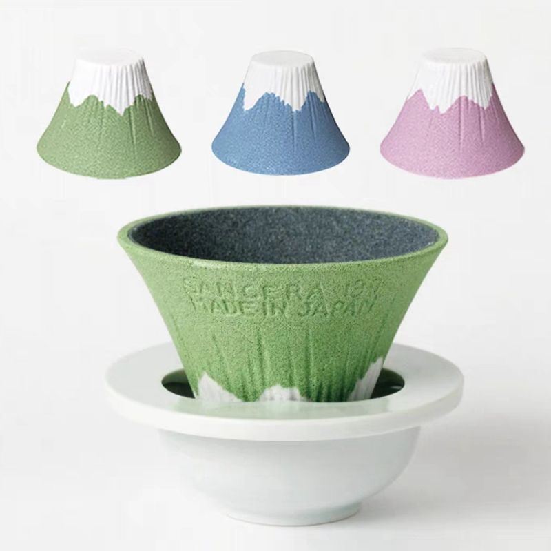 這款富士山造型手沖咖啡濾杯,以日本富士山為設計靈感,推出綠、藍、粉三款配色,搭配雪頂白的細節還原山體肌理,磨砂質感更添日式美學氛圍;作為咖啡濾杯,其杯身紋路可助力咖啡均勻萃取,同時獨特的山形設計也能直接作桌面的文創裝飾件。它既適配咖啡愛好者打造有格調的手沖咖角,也能作為充滿巧思的日式文創禮贈好物,憑顏值與實用的雙重屬性,成為手沖時光的別緻搭檔。