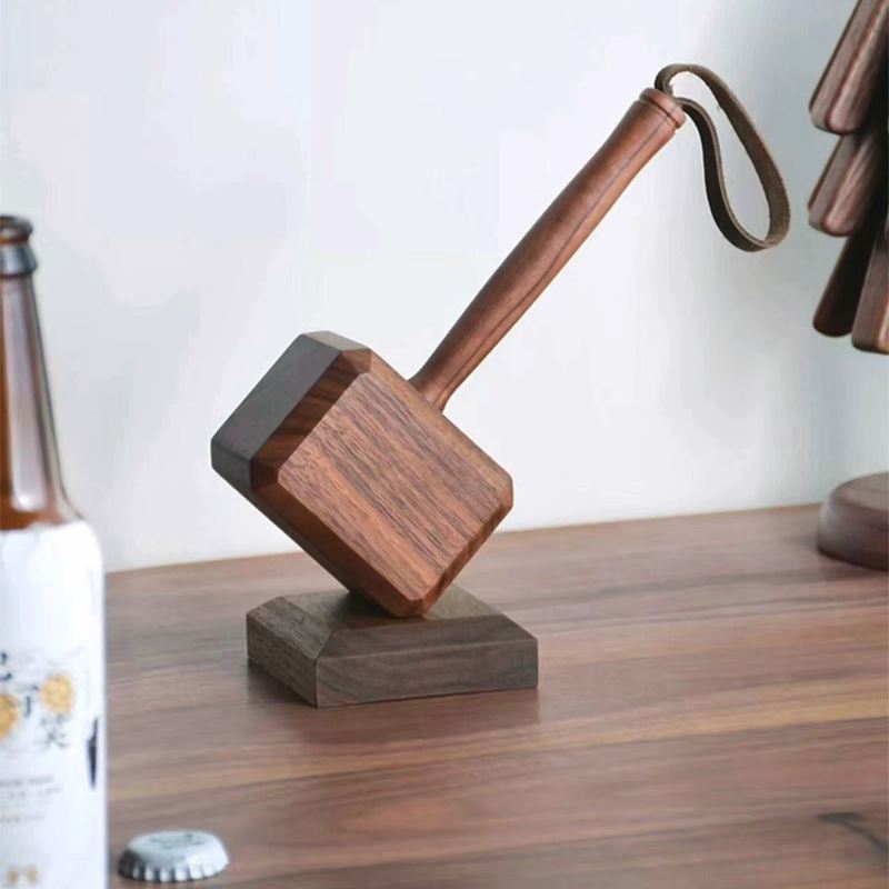 這款溫暖的胡桃木錘形開瓶器靈感來自復古錘子。錘身凹槽內隱藏著開瓶機構,方便輕鬆開啟瓶蓋。把手上附有掛繩,方便收納。隨附的木質底座穩固支撐,也方便存放。這款實用開瓶器是您家庭酒吧或餐桌的理想選擇。獨特的木質錘形設計,為任何空間增添時尚氣息。這款高品質生活用品,完美契合欣賞自然復古美學的人。無論是饋贈親友還是自用,都是絕佳之選。