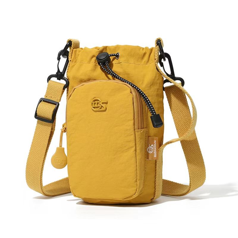 這款輕量斜背包是日常短途旅行與戶外遛彎的實用單品 ——採用耐磨防水的尼龍布料製作,自重輕盈且防污耐用,明亮的黃色調充滿活力,兼具顏值與實用性;包身設計有抽繩收口主袋與前置拉鍊口袋,可分層收納手機、鑰匙、紙巾等隨身小物,取用便捷;配套的可調式寬肩帶背負舒適不勒肩,適配不同身高需求,還自備小巧掛飾增添細節感;不管是日常散步、通勤裝物,還是戶外輕出行攜帶隨身物品,都能以便攜、耐磨、分層收納的屬性,成為省心的隨身好幫手。