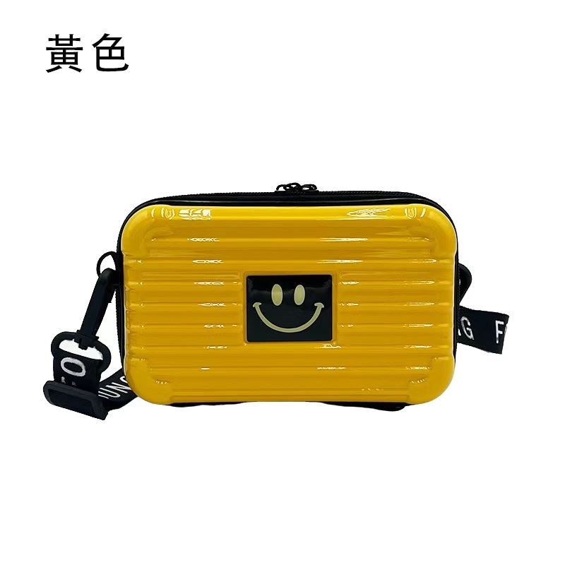 這款硬殼斜背包是日常穿搭的甜酷風單品 ——採用亮面耐磨的硬殼材質製作,耐刮防壓且質感十足,迷你行李箱般的造型自帶復古時尚感,正面點綴的黃色笑臉元素則為硬朗的殼身增添了俏皮活力;配套的可調節字母肩帶適配不同身高,背負舒適不勒肩,包身容量適中,可輕鬆收納手機、口紅、紙巾等隨身小物;不管是日常通勤、逛街約會還是短途出行,它既能憑藉甜酷兼具的造型成為穿搭亮點,又能以耐用防壓的屬性滿足實用收納需求,是個性女孩的出街好幫手。